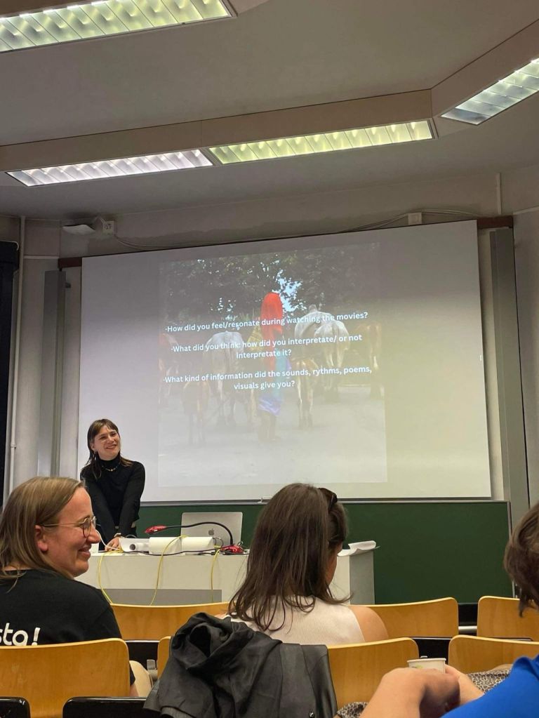 Together with the attendees, we reflected on the different ways our senses were engaged with the movie and wondered what the Adivasi soundscapes tell us about our relationship with the land. Then we had the honour to listen to postdoc student Richard Toppo telling us more about the historical context of Adivasi people, facing injustice until today.